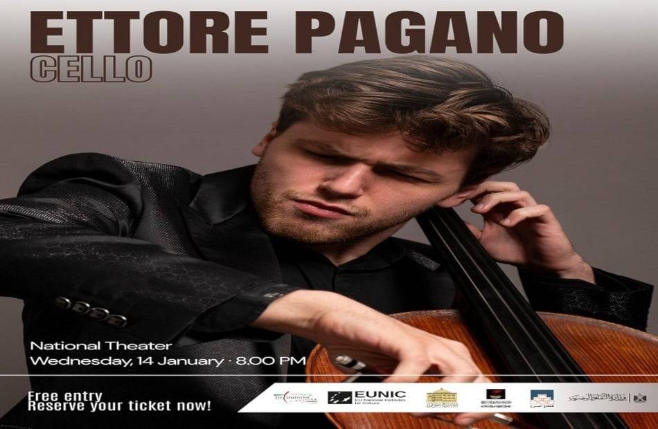 يحيي عازف التشيللو الإيطالي العالمي إيتوري باغانو حفلاً موسيقياً على خشبة المركز القومي للمسرح والموسيقى والفنون الشعبية بالقاهرة ، بالتعاون مع المعهد الثقافي الإيطالي، وإتحاد المعاهد الأوروبية: eunic مصر.