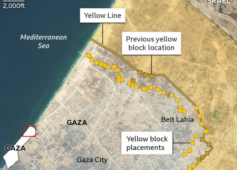 أظهرت صور الأقمار الصناعية، بحسب شبكة بي بي سي البريطانية، قيام الاحتلال الإسرائيلي بتوسيع دائرة الخط الأصفر ليشمل مناطق أعمق داخل قطاع غزة، ما يُعدّ خرقاً واضحاً لاتفاق وقف إطلاق النار.