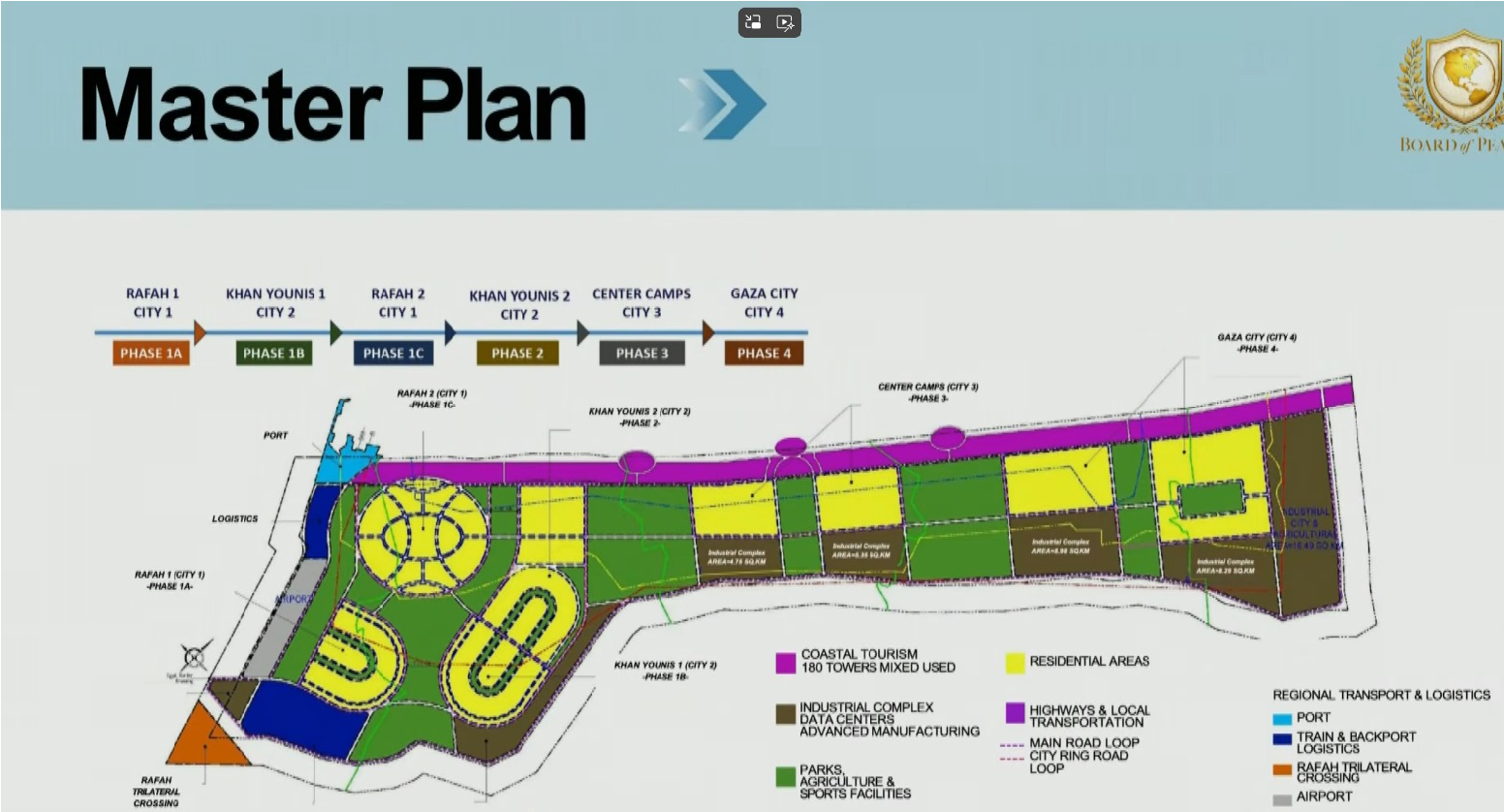 كما أشار عضو "مجلس السلام" جاريد كوشنرالى وضع "خططاً لتطوير غزة على مراحل". وأضاف كوشنر "هدفنا تحقيق السلام بين "إسرائيل" والفلسطينيين ويجب فتح صفحة جديدة في الشرق الأوسط" وقال ايضاً "سنعلن خلال مؤتمر في واشنطن عن مساهمات الدول لإعادة إعمار غزة." و استعرض كوشنر ايضا خطته في غزة.