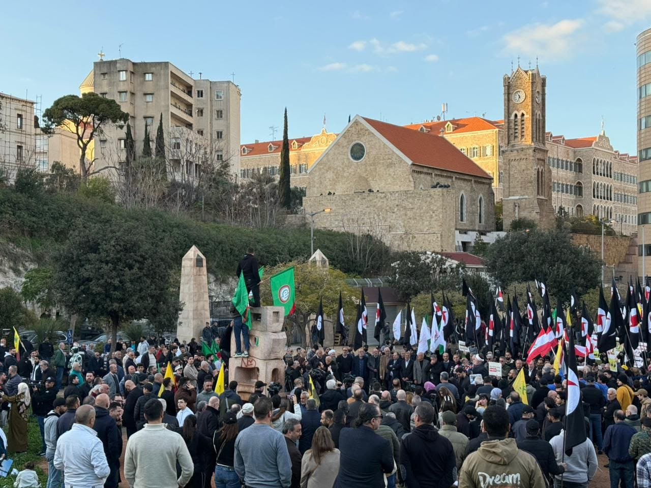 وشهد وسط بيروت تجمعًا جماهيريًا حاشدًا أمام مبنى الإسكوا، تحت شعار "كلّ الوطن مقاومة"، في تحرّك دعت إليه الأحزاب والقوى الوطنية، إلى جانب منظمات شبابية وطلابية، ونقابات واتحادات عمالية، وجمعيات أهلية وناشطين من مختلف المناطق، تأكيدًا على وحدة الموقف الوطني في مواجهة الاعتداءات الإسرائيلية، ودعمًا للثوابت الوطنية.